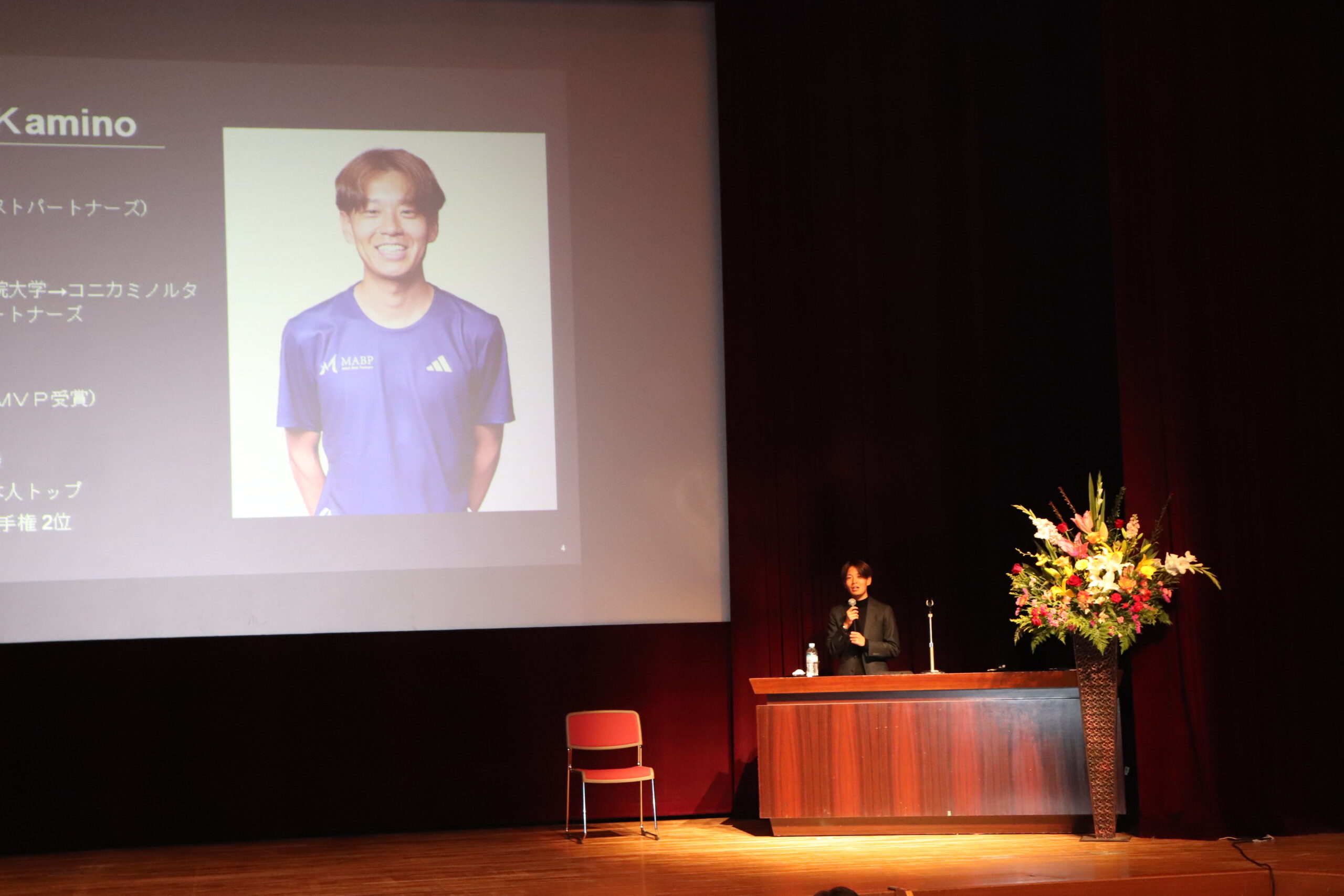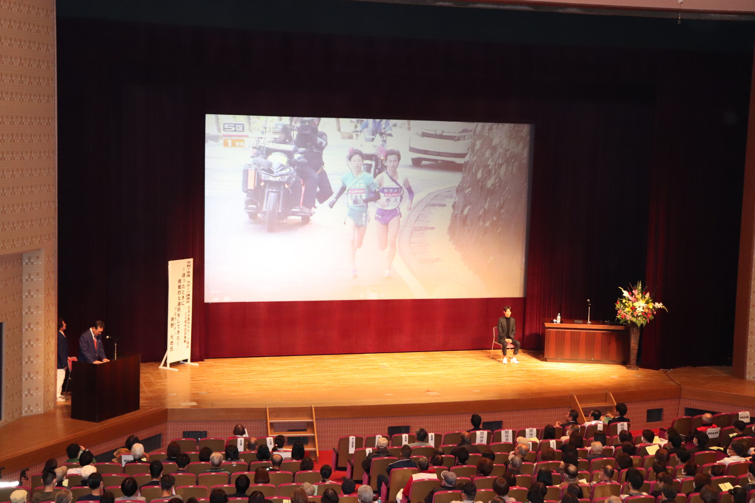 令和8年2月15日(日)名古屋芸術大学アートスクエア 大ホールにおいて、講師にプロランナー 神野大地氏をお迎えし「令和7年度スポーツ講演会」を開催しました。「迷ったときに、挑戦的な選択をしてきた」をタイトルに、箱根駅伝では大学2年生で「花の2区」を任され、3年生では12月の練習で結果が良く土壇場で5区を任されたが結果を残し「三代目 山の神」と呼ばれるに至ったなど、興味深いお話を伺いました。