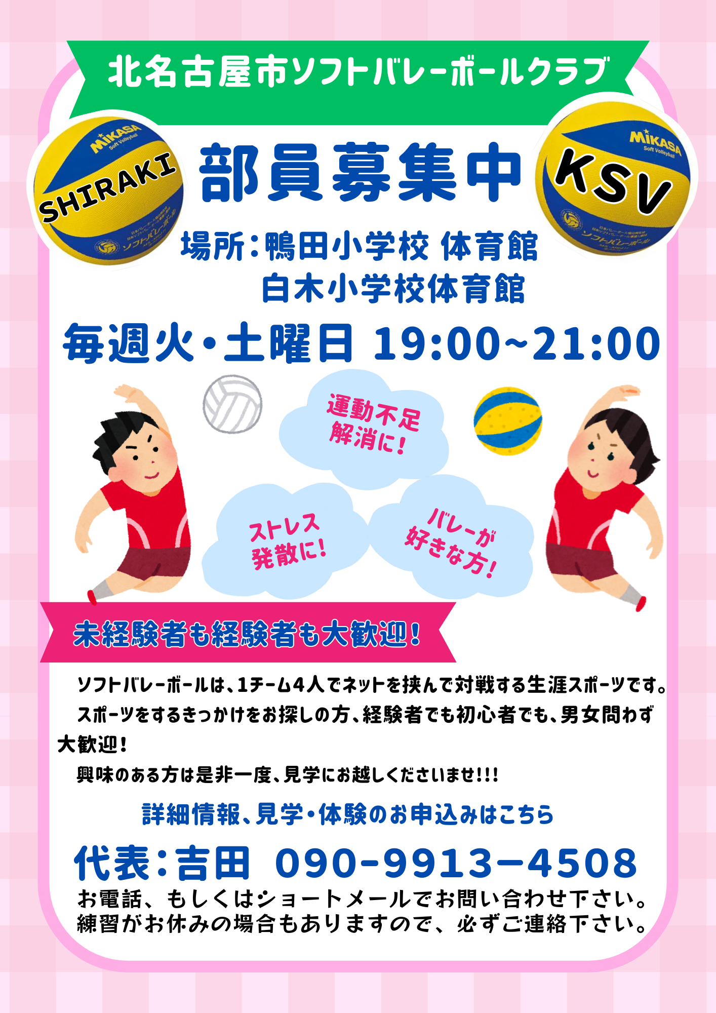 *連絡先:ソフトバレーボールクラブ 部長 吉田 保 090-9913-4508