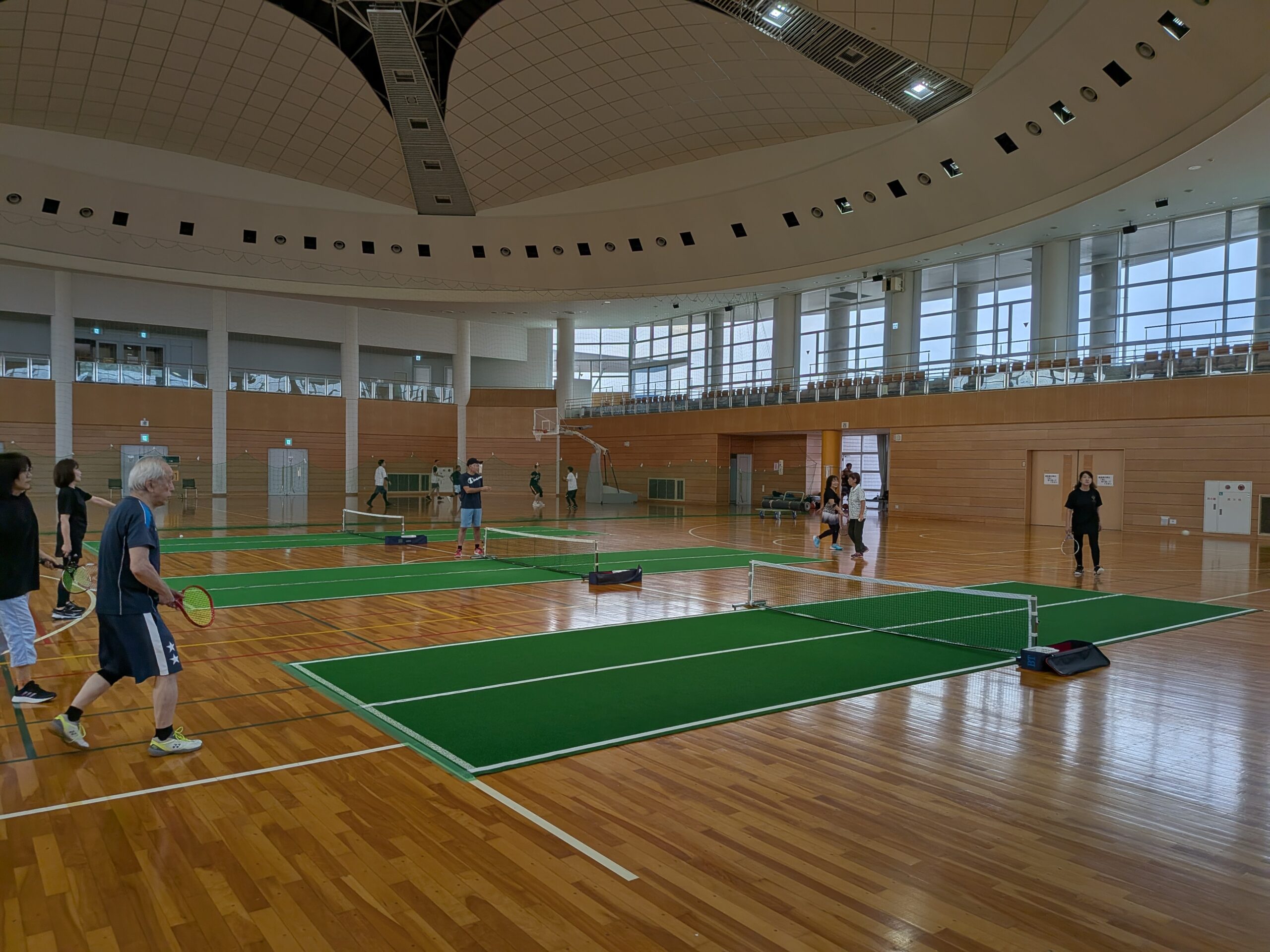 バウンドテニスは、室内でも楽しめる日本発祥のスポーツで、テニスを基に独自に発展しました。コートは、バドミントン程の広さで、専用のラケットと柔らかいボールを使用する為、初心者や高齢者でも無理なくプレーできます。ラリーが続きやすく、運動不足の解消や仲間との交流にも最適です。室内なので天候に関係なく楽しめ、年齢や経験を問わず、誰でも気軽に始められるスポーツとして、全国各地で親しまれています。是非一度覗いてみて下さい。