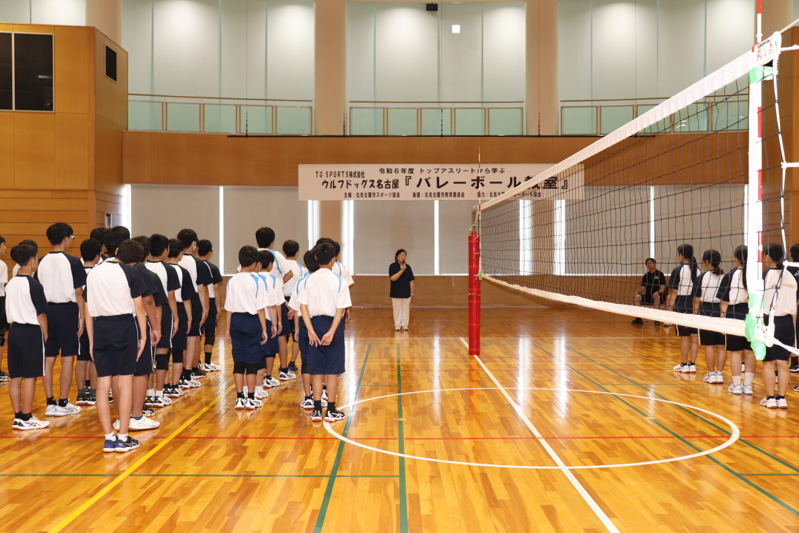 バレーボール教室 指導者:ウルフドッグス名古屋スクールコーチ5名参加人数: 市内中学校バレーボール部員 80名 |